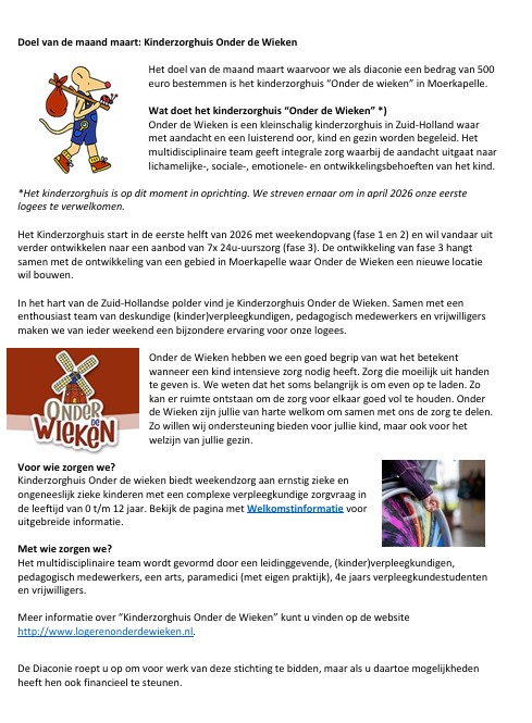 Doel van de maand maart: Kinderzorghuis Onder de Wieken